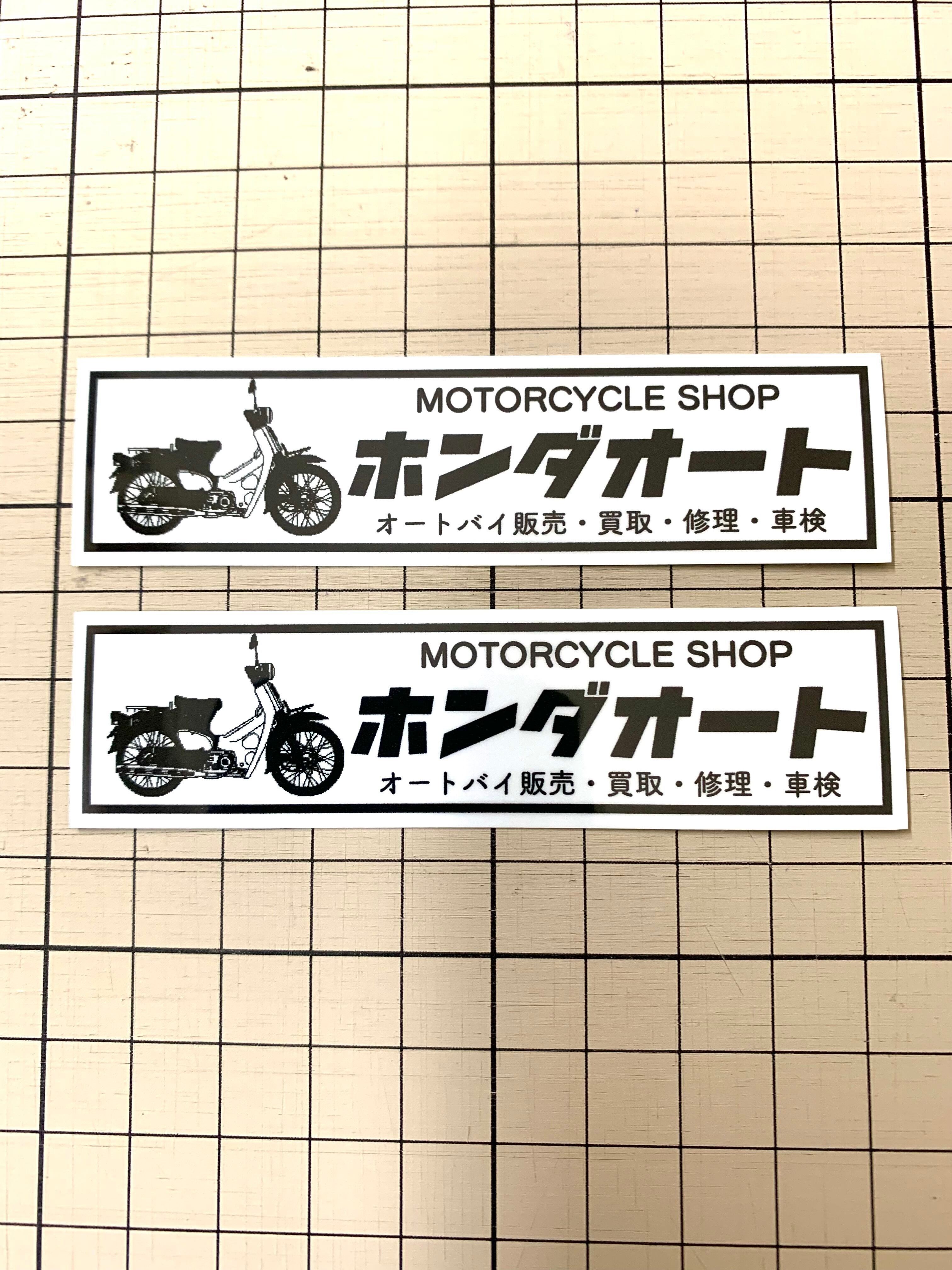 スーパーカブ専門店をイメージし、白ベースに黒文字でカブの画を入れて仕上げました。